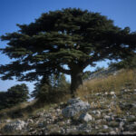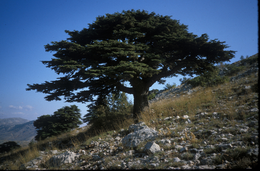 מימין: עץ ארז הלבנון בגבל ברוך. אורי ראה את שאריות חורשת ארזי הלבנון ב"חניון הארזים" בהר-הצופים וכאב את אובדנם. היה זה אלכסנדר איג אשר במו ידיו אסף זרעי ארז הלבנון בצפון הר-הלבנון בשנת 1932 הנביט וגדל מהם את חורשת הארזים המפורסמת בגן הבוטני.
