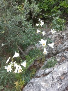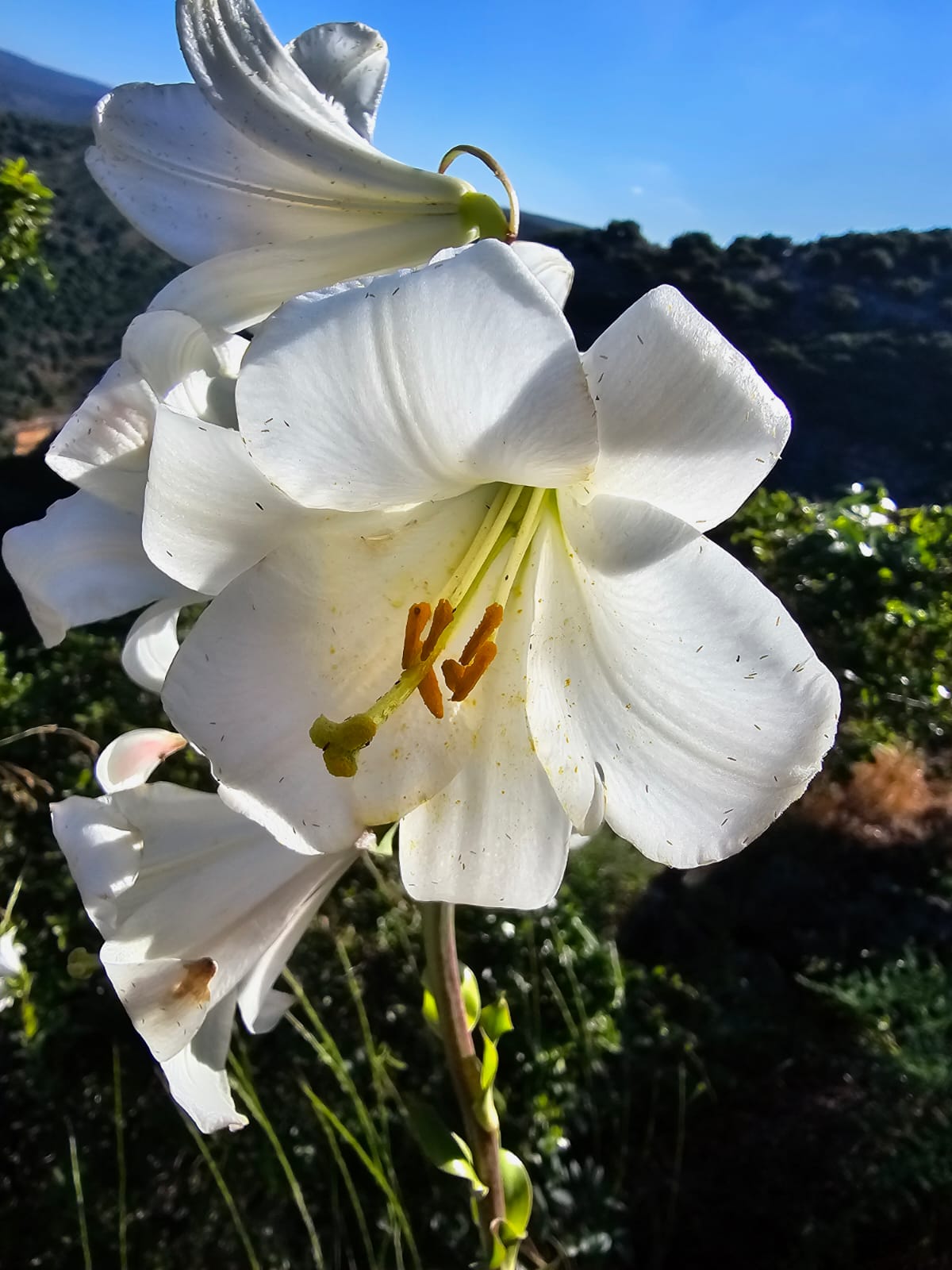 שושן צחור Lilium candidum פורח בשביל הילה במדרונות נחל כזיב בגליל. צילם עופר אבל ©. "עוזי פז פרש בפני אורי את משנתו בעניין השושן הצחור. הדיונים ביניהם בנושא זה היו ארוכים, כשעוזי גורס שמדובר למעשה בכמה מיני איריסים הדורים;