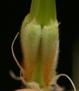 מקור-חסידה תמים .Erodium subintegrifolium Eig מימין: עלי גביע 5 מחודדים בקצותיהם ובעלי 2 זיפים. במרכז 10 אבקנים 5 מהם עקרים, צמודים לשחלה העילית שבראשה עמוד עלי קצר נושא בראשו 5 צלקות. צילם אורי פרגמן-ספיר©. משמאל: הפרי מפרדת, המתפרקת בהבשלתה ל5 פרודות כל אחת מכילה זרע ומקור. צילמה ערגה אלוני©