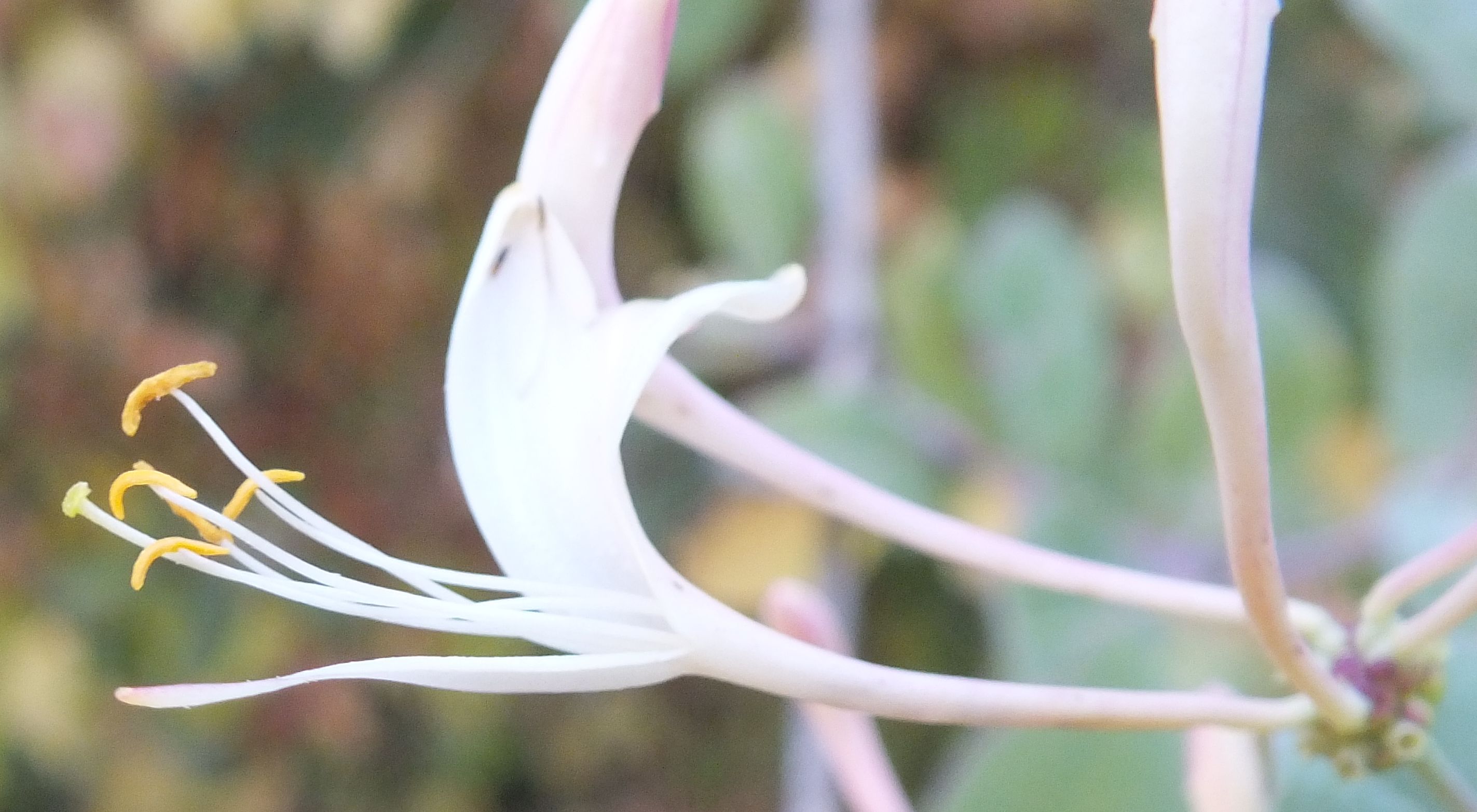 הפרחים ערוכים בסוככים/אשכולות בראשי הענפים או בענפי משנה קצרים בקרבת ראשי הענפים. בכל סוכך 10 עד 30 פרחים. הגביע ירוק, קצר, מאוחה בבסיסו ובעל 5 אונות קצרות בראשו. הכותרת דו-שפתנית, דקה וארוכה, אורכה כ 4 ס"מ. בשלב הניצן צבעה ארגמני. כאשר הפרח נפתח צבעה החיצוני של הכותרת נעשה לבן ובהמשך קרם ואילו הצבע הפנימי נעשה צהוב. שילוב שלושת הצבעים ארגמן, לבן וצהוב שובה את העין והיה אחד הגורמים לשימוש הגנני הנפוץ במין זה. שפתה העליונה של הכותרת מחולקת לשתיים עד שלוש אונות קצרות ועגולות, שפתה התחתונה תמימה. עמוד העלי היחיד וחמשת האבקנים בולטים מתוך הכותרת, צבעם לבן וראשיהם (המאבקים והצלקת) צהובים. הפרחים ריחניים ועשירים בצוף המרוכז בתחתית צינור הכותרת, הצוף נמצץ ע"י פרפרים בעלי חדק ארוך.